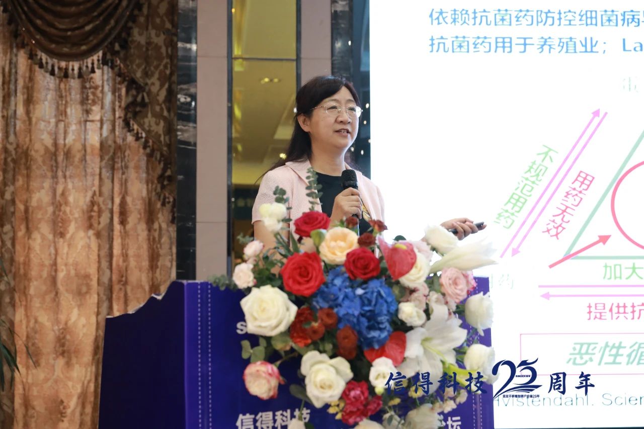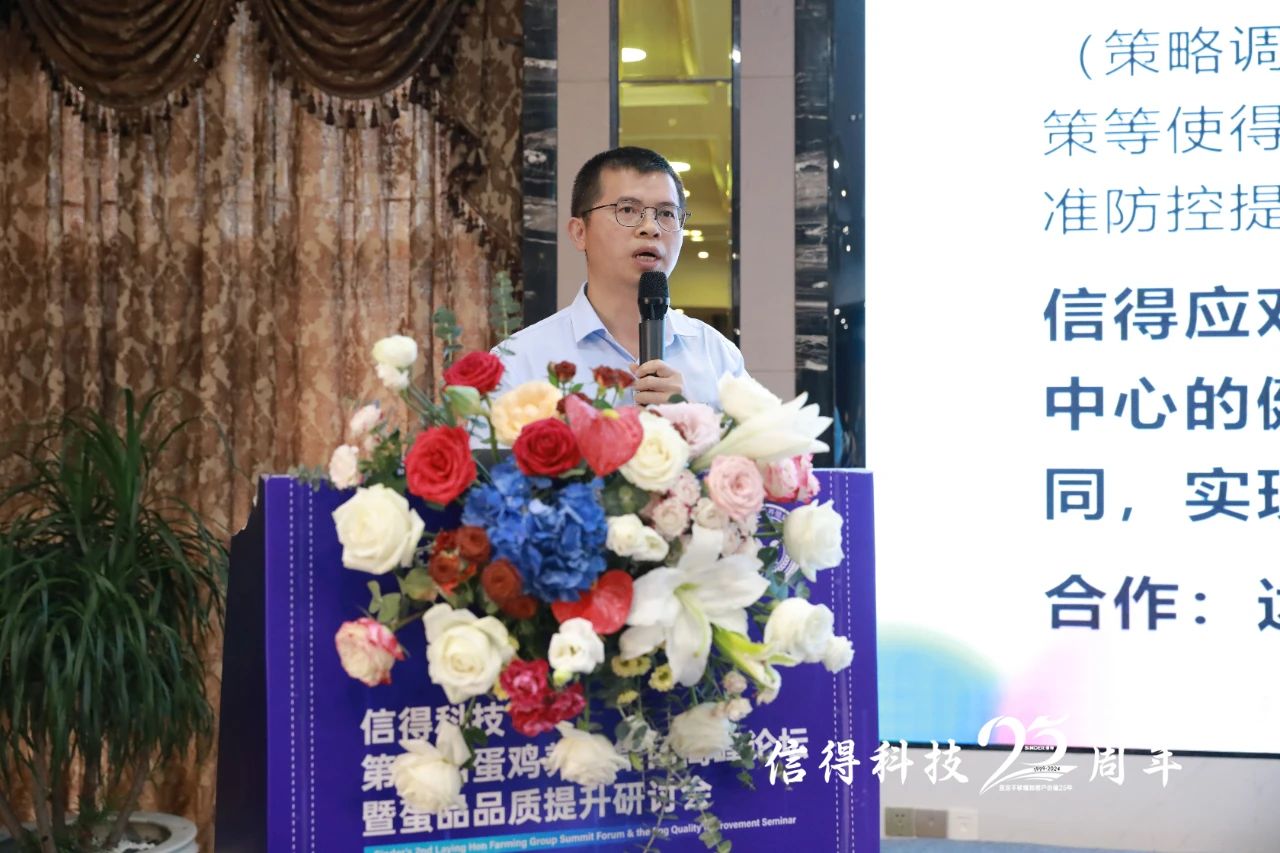 信得科技支原体产品经理刘丰欣通过大量的试验数据和临床症状展示蛋鸡防控MS的重要性。MS活疫苗一次免疫,持续保护,在上呼吸道建立起有效的免疫力,避免野毒在体内繁殖造成关节、呼吸道、生殖道等的损伤,产蛋后期还可以持续刺激产生MS抗体保护。而且经过多年深度服务,信得已经整合出针对支原体防控的方案:围绕MS防控的活疫苗——MS-H、TS-11,抗生素——包被泰妙菌素、纳米乳替米考星等,增免制剂+中药——信必妥加双黄连口服液等,配套支原体检测服务和现场服务跟踪,减少蛋鸡养殖中支原体带来的损失。