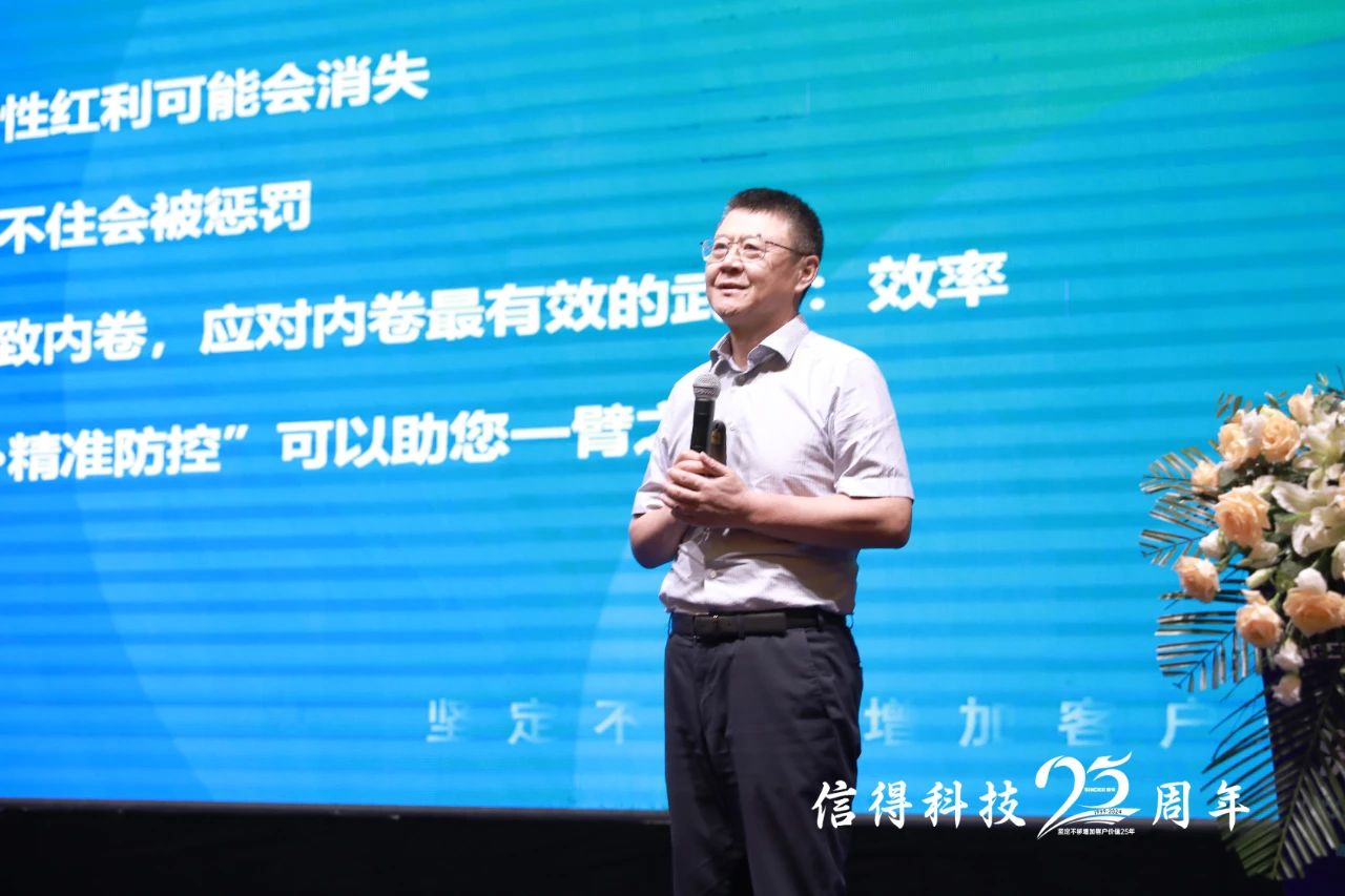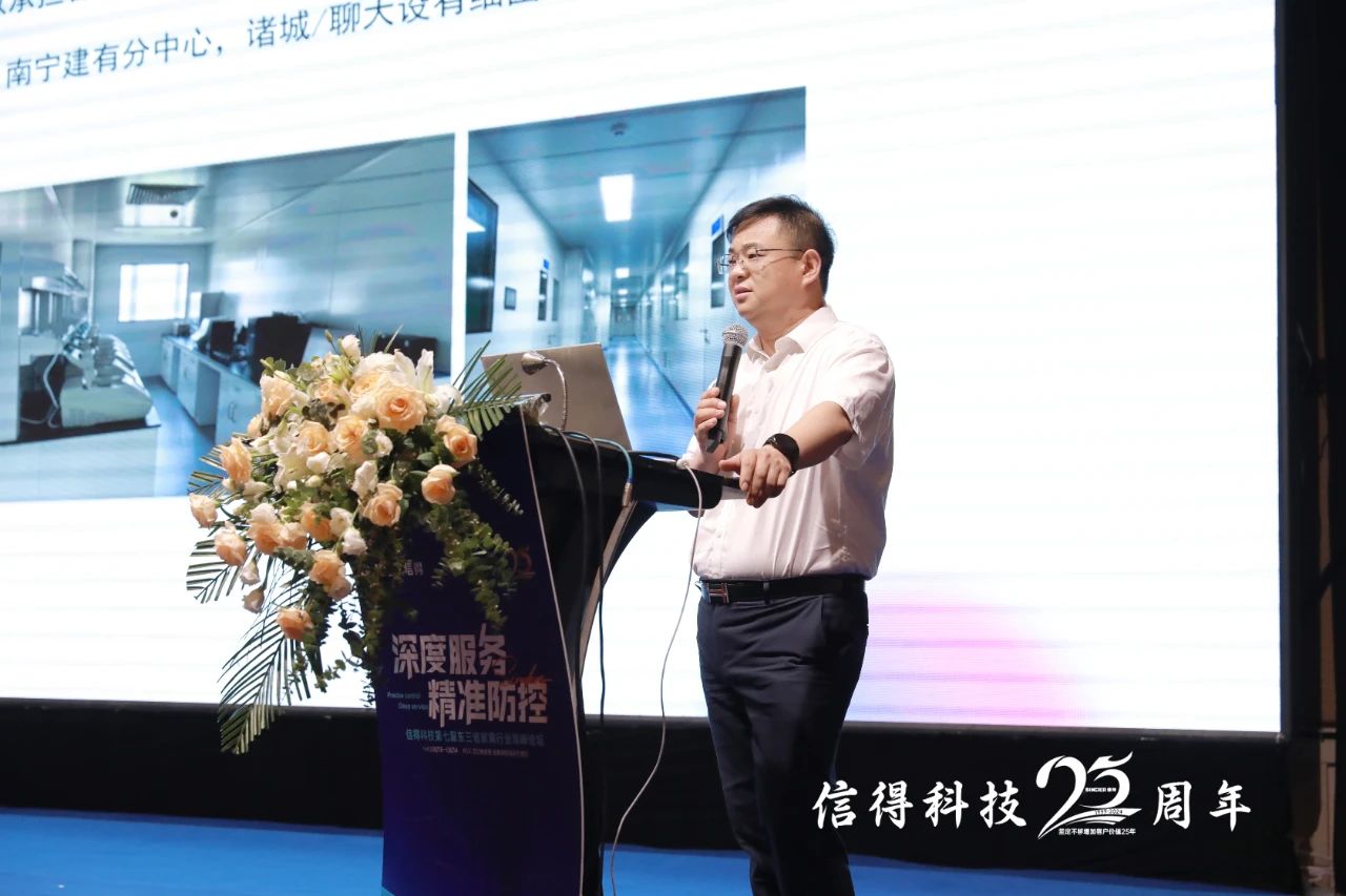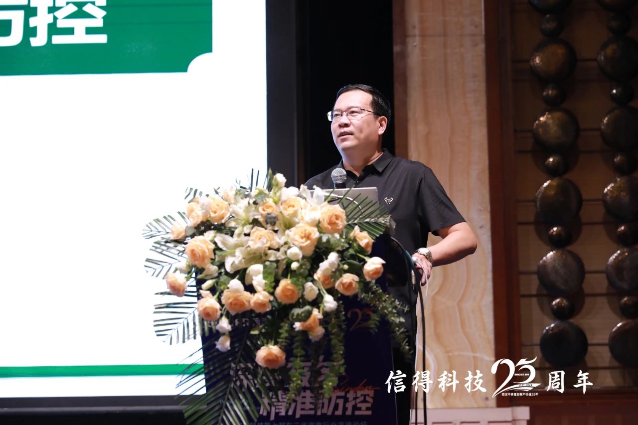 信得科技董事长李朝阳进行了《要做好打硬仗的准备》为主题的宣讲,李朝阳先生指出,在白羽肉鸡产业周期性红利逐渐消失的背景下,技术红利成为企业生存与发展的关键。他强调,先抓住技术红利的企业才能在激烈的市场竞争中脱颖而出。在此背景下,信得科技凭借其深厚的动保技术积累,致力于为客户提供“深度服务·精准防控”的解决方案,充分发挥动保实验室的优势,成为客户最可靠的“精准防控”合作伙伴。