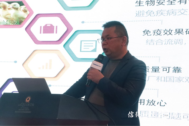 会议伊始,信得科技山东事业部总经理辛海业致辞,向与会嘉宾详细介绍了信得科技公司近年来的发展情况,重点强调了在当前养殖环境下,加强技术交流与合作的重要性及肉鸭养殖精准防控的必要性。