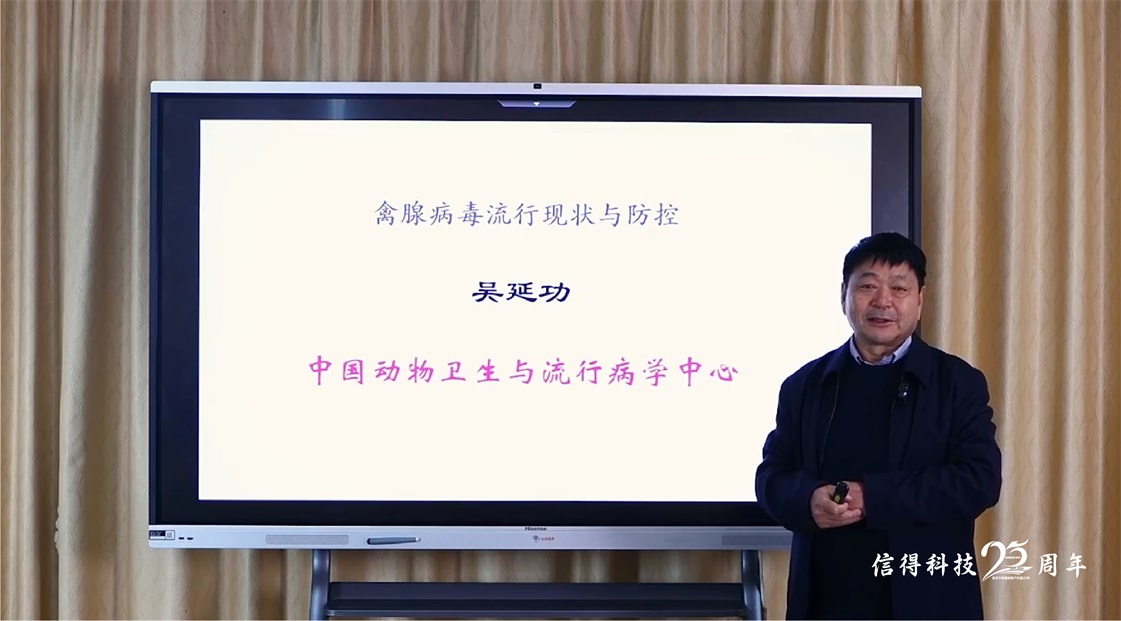 中国动物卫生与流行病学中心吴延功研究员,广西大学动物科学技术学院韦平教授,信得科技董事长李朝阳先生、研发中心总监宋庆庆博士、北京信得威特副总经理田伟博士通过线上直播与信得合伙伙伴、养殖业界同仁齐聚一堂,共同见证“新流法腺”、“新流腺”上市。