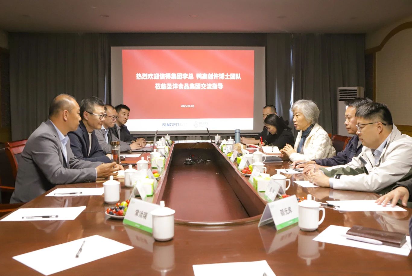 4月3日,信得科技董事长李朝阳、鸭高创总经理许毅博士一行4人前往圣沣食品集团,就在肉鸭疫病防控领域的合作进行深入洽谈。圣沣食品集团董事长韩伟、养殖事业部总经理赵文英、内控管理部总经理潘秀丽等高层领导热情接待,并组织鲁中原料部及养殖事业部各部门负责人共同参与座谈。