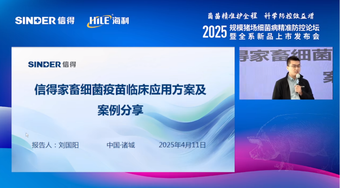 信得科技家畜产品经理刘国阳作《信得细菌疫苗临床应用方案及使用案例分享》报告分享