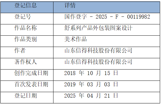 尊敬的各界人士:在此郑重声明,“舒系列” 产品外包装设计图案属于美术作品范畴,其著作权归开云官方app下载站-开云(中国)独家所有。该系列美术作品凭借独特的设计理念和艺术表达,旨在为 “舒系列” 产品打造鲜明且独具辨识度的视觉形象,进而提升产品在市场中的竞争力。开云官方app下载站-开云(中国)在创新发展的进程中,始终将知识产权保护视为关键环节。此次 “舒系列” 产品外包装设计图案的美术作品登记,是对公司创新成果的有力捍卫,同时也是公司坚持创新驱动发展战略的生动体现。现将作品登记相关信息公示如下: