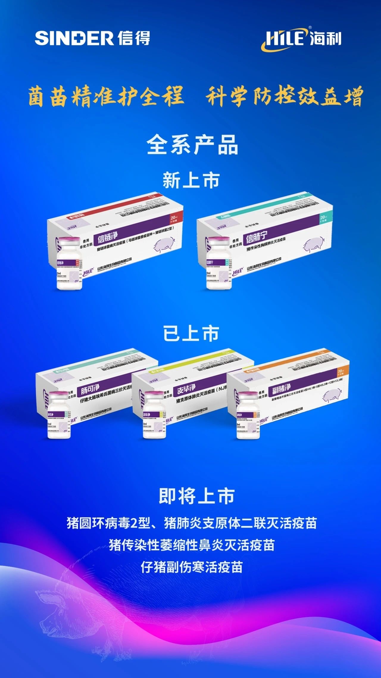 全系细菌苗产品矩阵,覆盖核心病原解决方案信得科技通过多年的技术沉淀和持续研发投入,现已构建起覆盖细菌病防控的全系产品线,包括:2个新上市的产品(猪传染性胸膜肺炎二价灭活疫苗、猪链球菌病灭活疫苗);3个已经上市的产品(副猪嗜血杆菌病三价灭活疫苗、仔猪大肠埃希氏菌病三价灭活疫苗、猪肺炎支原体灭活疫苗);3个即将上市的产品(猪萎缩性鼻炎灭活疫苗、仔猪副伤寒活疫苗、猪圆环病毒2型猪肺炎支原体二联灭活疫苗)。